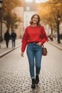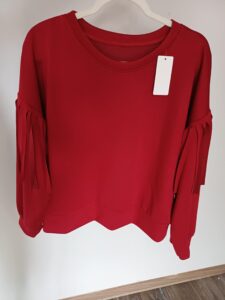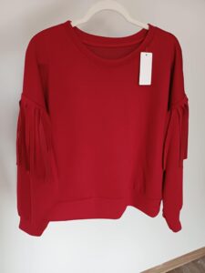 Masełkowa bluza z frędzlami przy rękawkach. Kolor idealnie pasujący do jesiennych stylizacji-Burgund.
