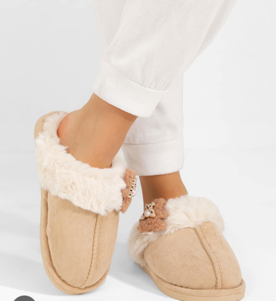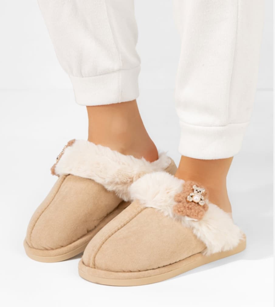 POLECAM słodkie, MEGA WYGODNE i CIEPLUTKIE kapcie futrzane zdobione cyrkoniowym misiem.