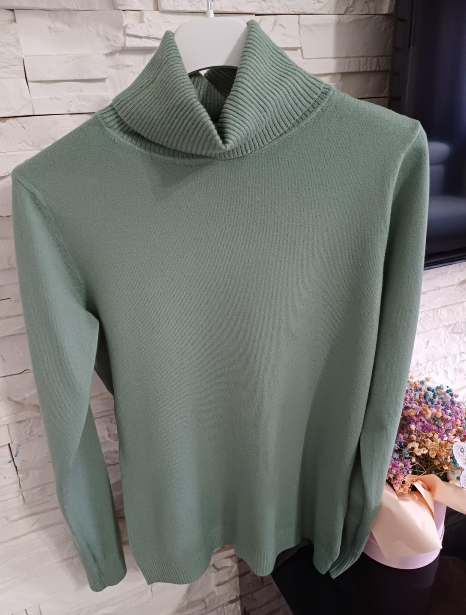 Świetnie sprawdzi się pod płaszcz, czy też ramoneskę. Piękny zielony kolor idealnie wpasowujący się w jesienne trendy.