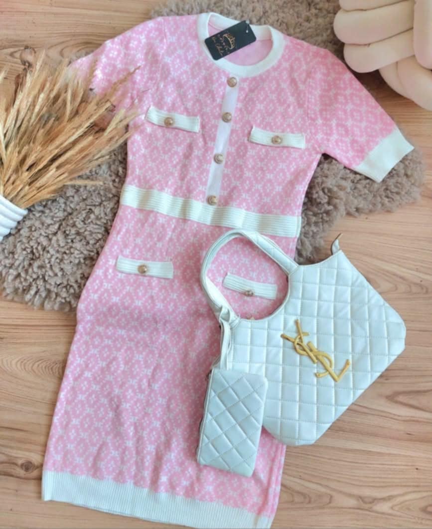 Sukienka zdobiona guziczkami. Model dopasowany, pięknie podkreśla sylwetkę. Materiał u ciągliwy.