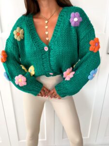 Przepiękny sweterek oversize na guziczki z kwiatami 3d.