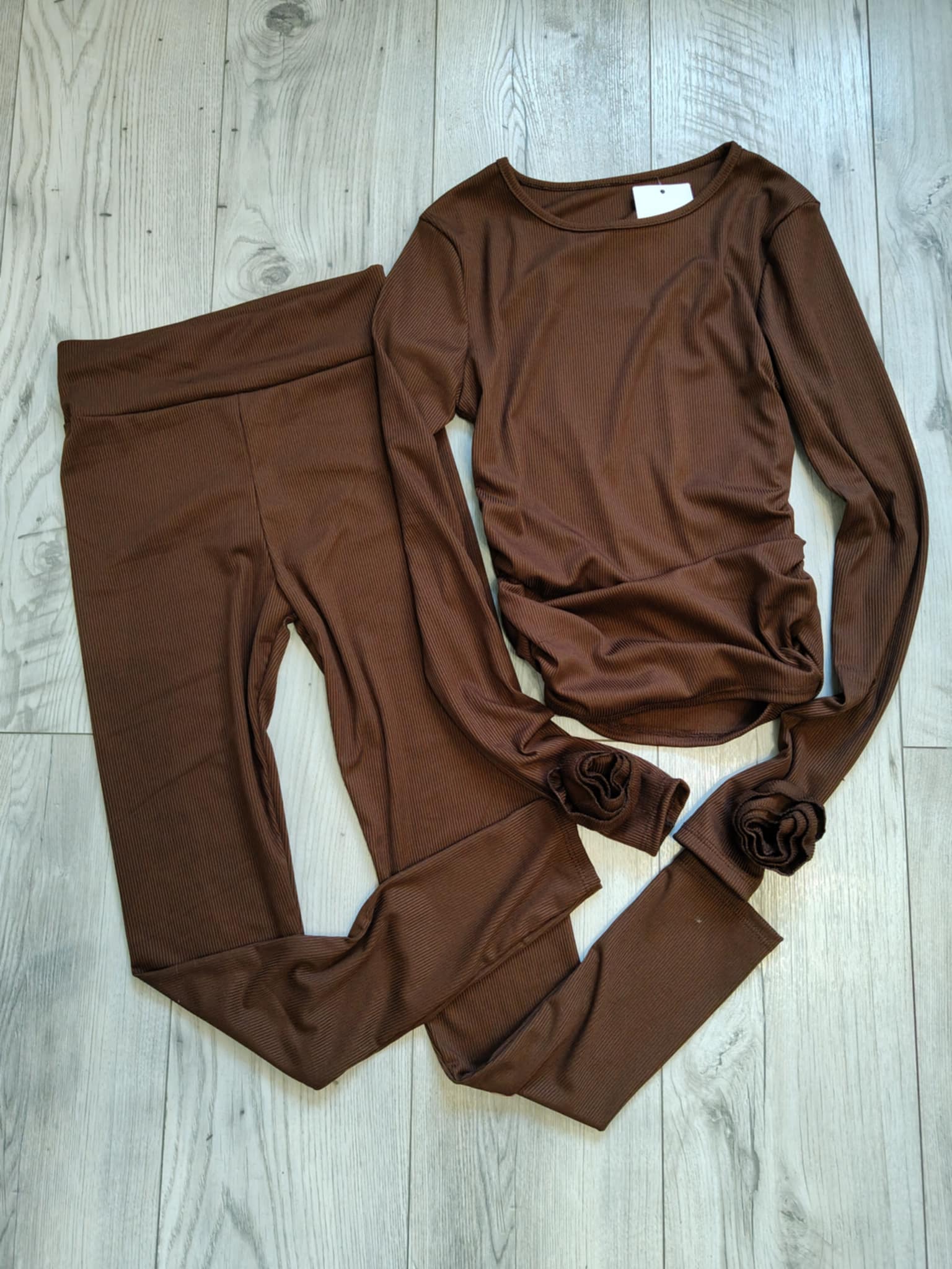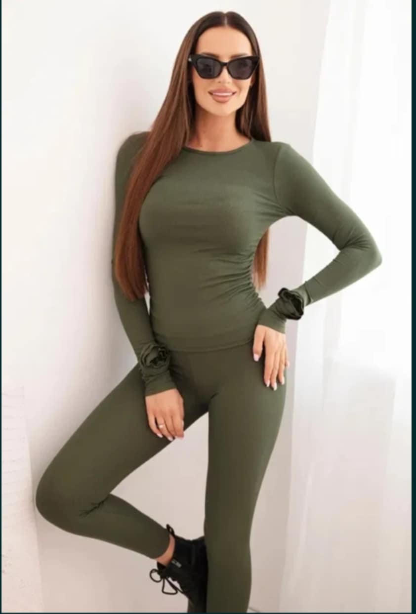 Komplet damski prążek Legginsy plus bluzka różyczki