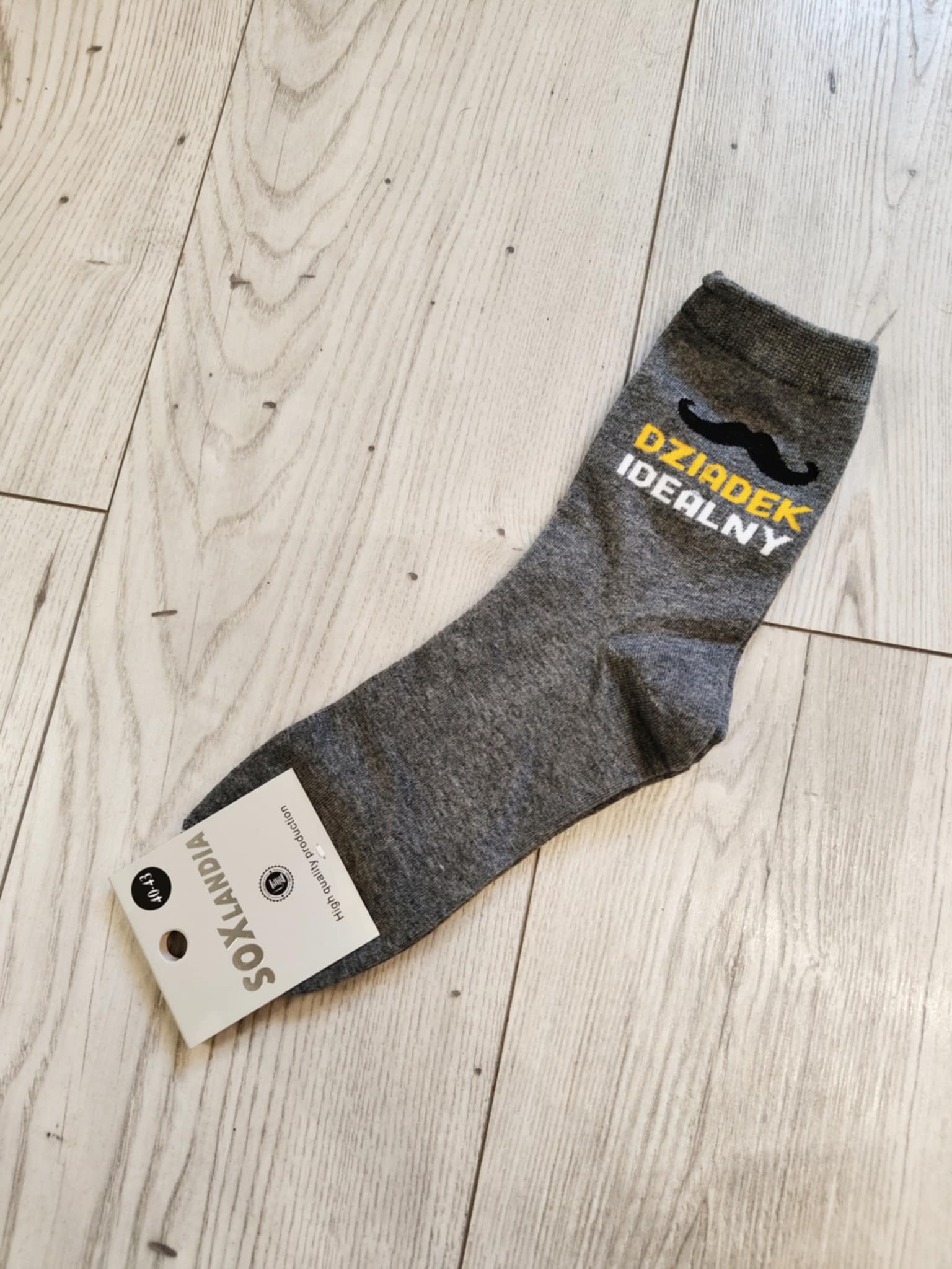 Skarpetki idealne na prezent dla dziadka z napisem DZIADEK IDEALNY!!