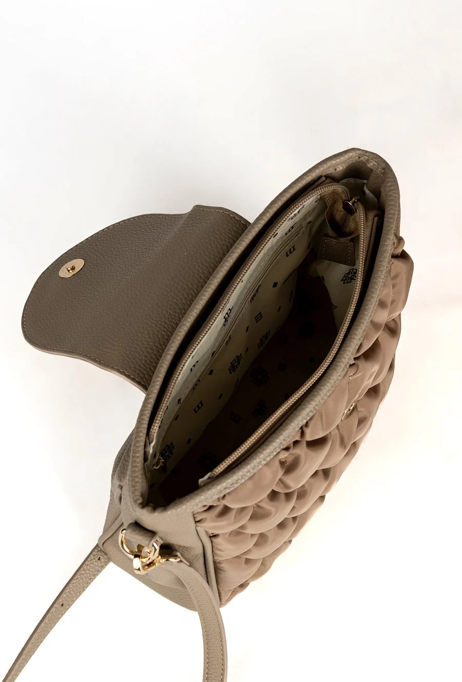 Torebka damska o pikowanej strukturze z efektowną klapą ozdobioną frędzlami,